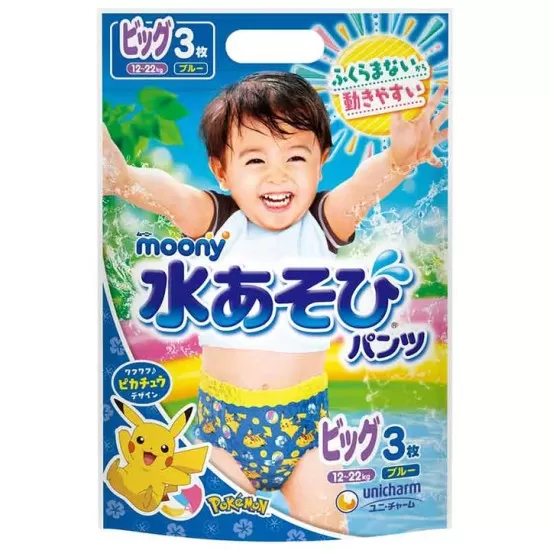 Japońskie pieluchomajtki do kąpieli MOONY, rozmiar Big (12–22 kg), dla chłopców, 3 szt. – 4903111117505
