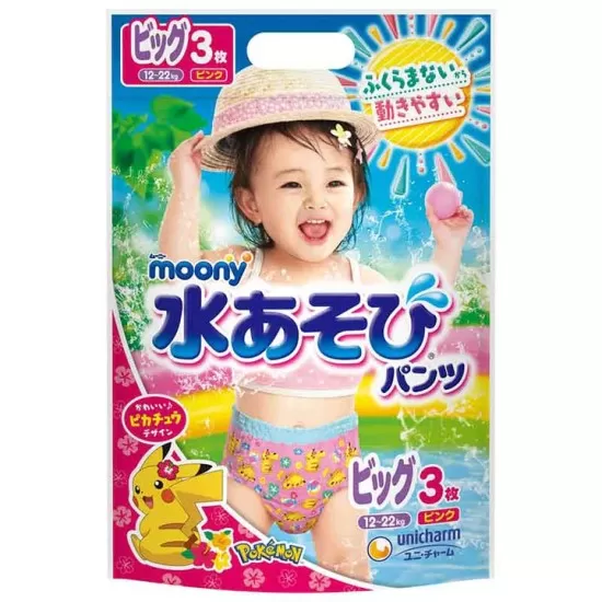 Japońskie pieluchomajtki do kąpieli MOONY, rozmiar Big (12–22 kg), dla dziewczynek, 3 szt. – 4903111117727